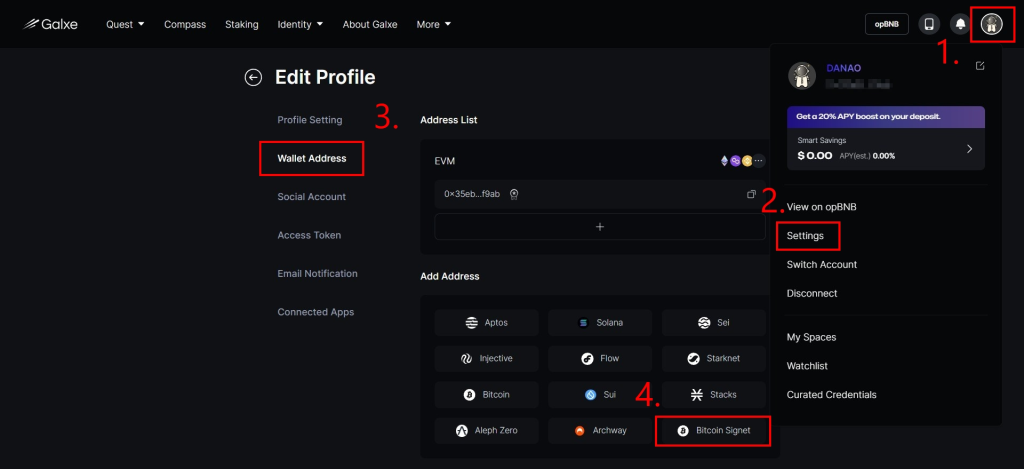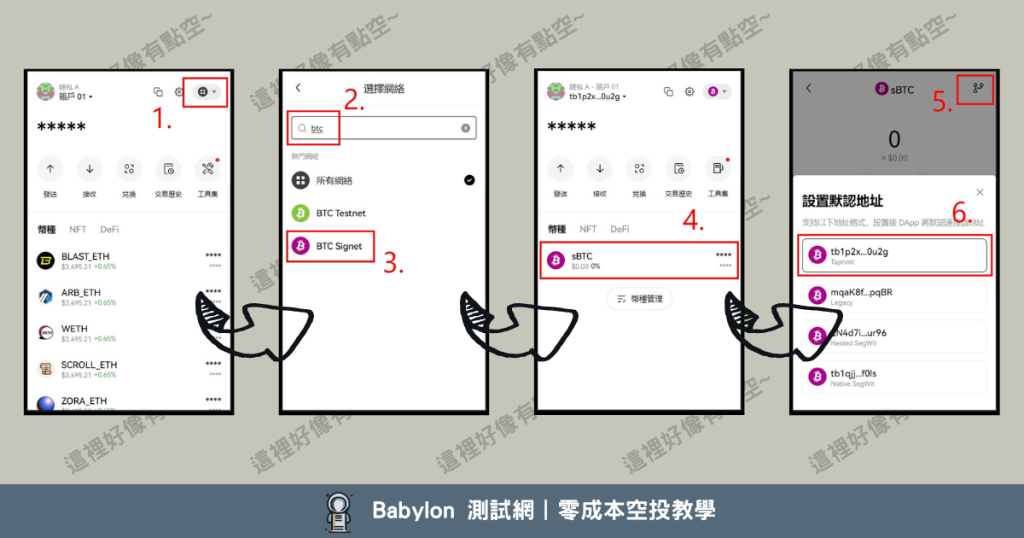 - 按照下面步驟拿到 Signet BTC 的錢包地址。
