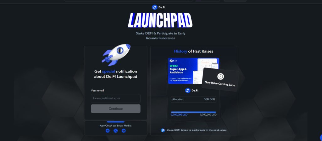 目前還沒有開始,但未來應該是需要以質押 $DEFI 代幣來做為參與IDO的活動。
