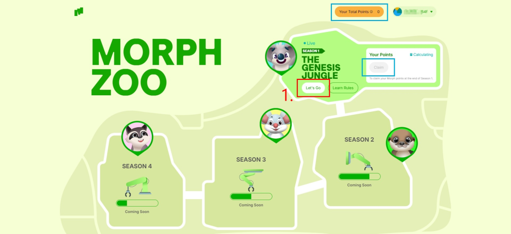 下圖可以看到,總共有四季激勵任務,現在是第一季,還算是早期,點擊「Let’s Go」進入任務。