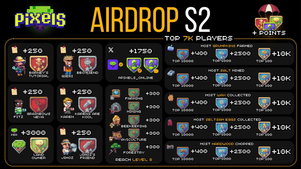 - 官方的排行榜︰https://dashboard.pixels.xyz/leaderboards