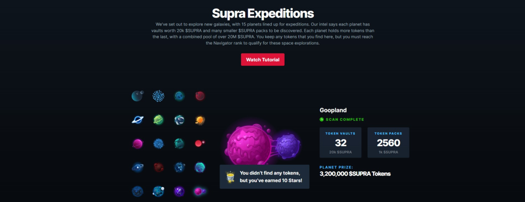 每週可以掃描一次,有機會可以直接獲得 $SUPRA 代幣,沒得到代幣的安慰獎是星星。