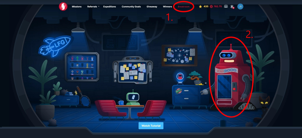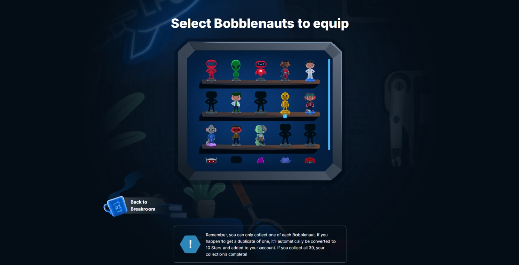 每天可以到 Breakroom 裡,點選最右邊的機器人,就可以進到扭蛋頁面。
