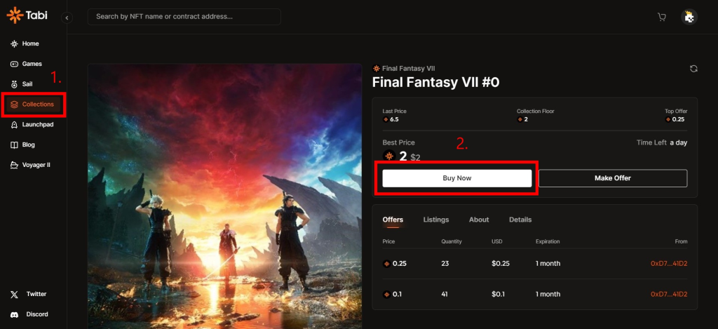 - 左邊找到「Collections」,點擊之後會有各個不同的 NFT 列表,選最便宜的就可以了。