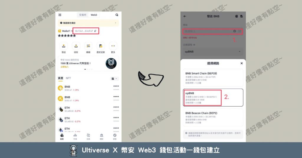 - 準備少許$BNB ( opBNB 鏈)及$ETH( Blast & Arb 鏈)。(下面有跨鏈教學)